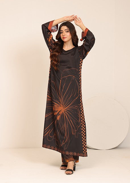 Step into elegance with our Midnight Bloom Silk 2-Piece Suit — a perfect fusion of comfort and sophistication. Crafted from premium silk fabric, this outfit features an eye-catching floral print in rich copper tones against a deep black base, giving it a luxurious yet modern look. Whether it's a dinner, festive gathering, or casual day out, this suit ensures you stand out with effortless grace.