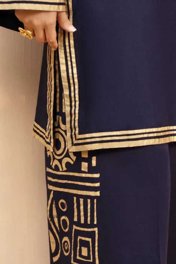 Details: Elegant embroidery on shirt and trousers