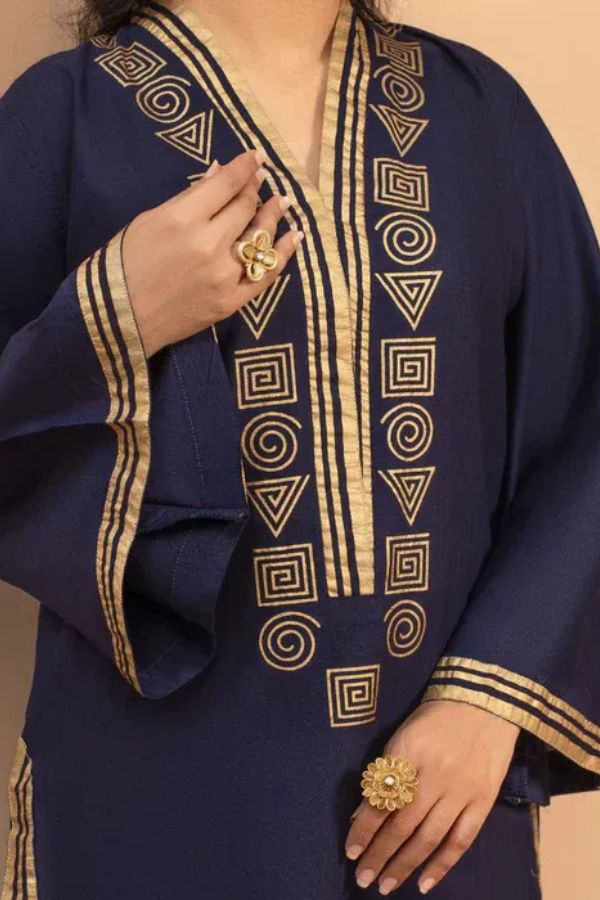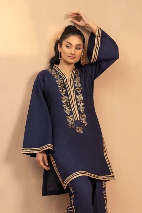 Make a statement with this beautifully crafted Dhanak embroidered 2-piece outfit, designed to bring effortless elegance to your wardrobe. The intricate embroidery on the neckline, sleeves, and trousers adds a touch of sophistication, while the high-quality fabric ensures all-day comfort and style.