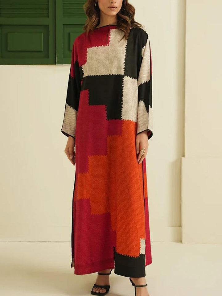 Unleash your inner artist with the Architect Maxi Dress, a signature piece designed for maximum impact. This stunning, long-length dress is a wearable piece of modern art, defined by its geometric color-block pattern and powerful palette.