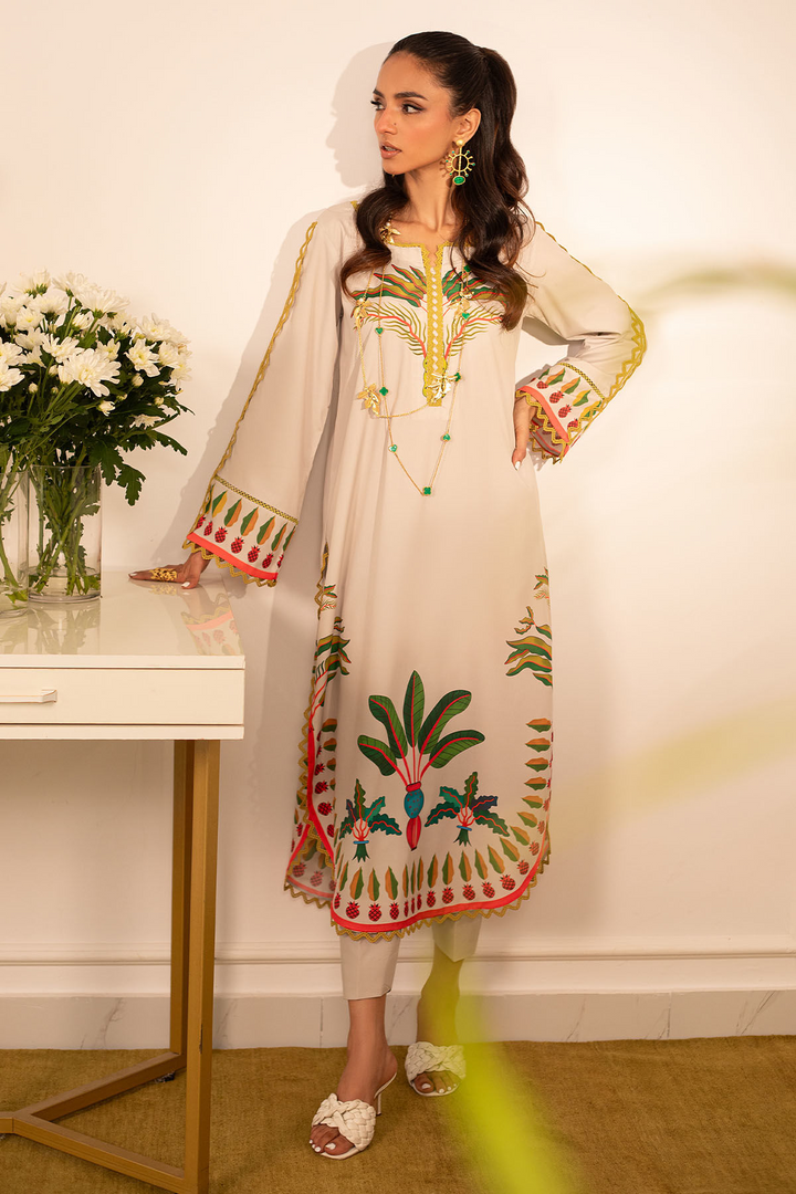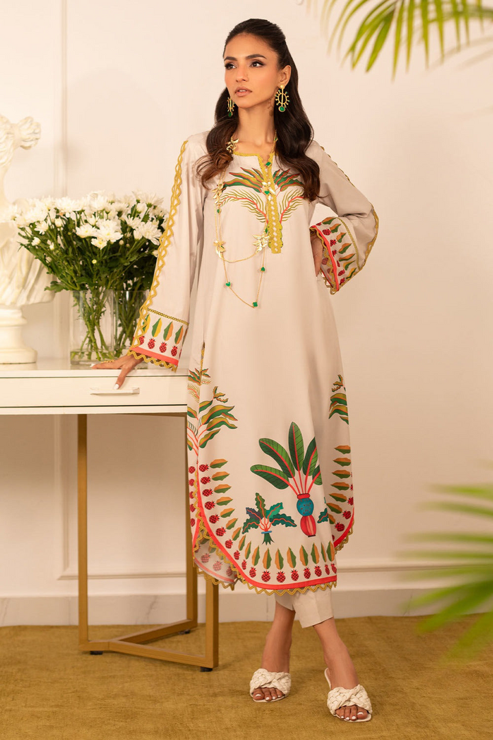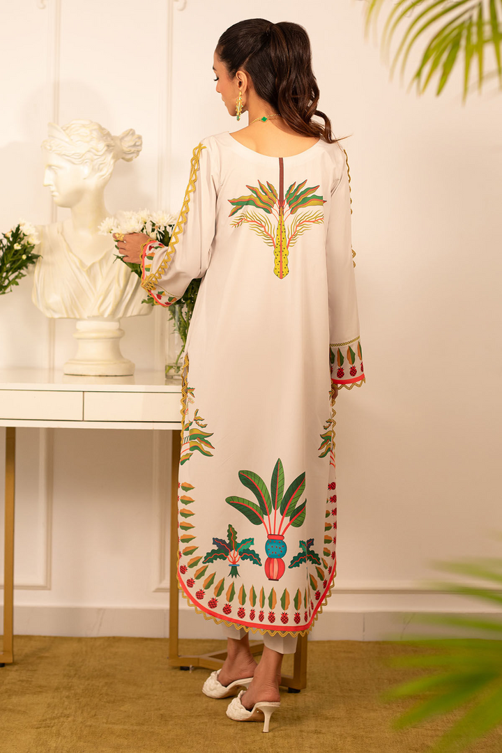 Radiate elegance with Tropical Grace, a mesmerizing Silk 2-piece ensemble designed to elevate your seasonal wardrobe 🌸. Featuring vibrant tropical-inspired prints on a soft ivory base, this outfit blends luxury and comfort effortlessly. The premium silk fabric drapes beautifully, making it perfect for daytime gatherings or festive soirées 🌞. A unique mix of artistry and sophistication — this is Fasanaa’s signature style redefined 💫.