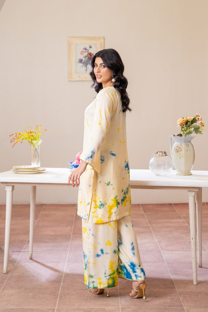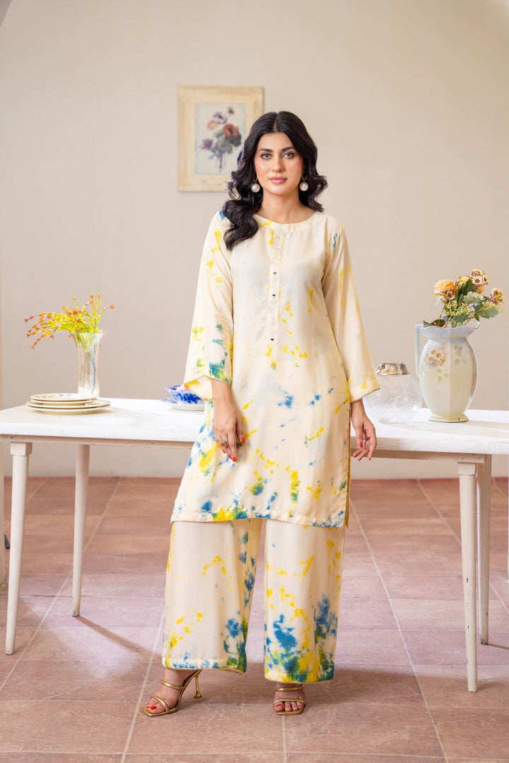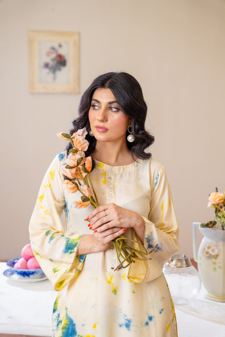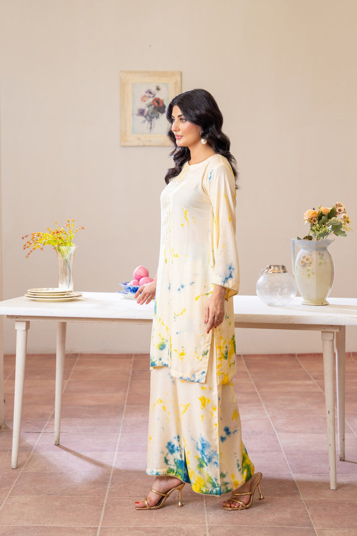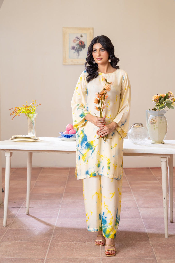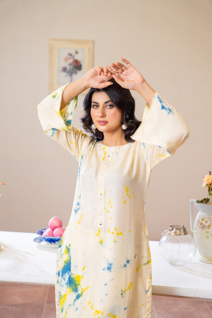 Embrace effortless elegance with Lemon Mist, a refreshing outfit crafted from premium Dhanak fabric 🌿. This soft cream ensemble features splashes of sunshine yellow and ocean blue, creating a breezy tie-dye effect that radiates calm sophistication 🌤️. Designed for comfort and modern grace, its minimal silhouette makes it ideal for casual days, brunches, and cozy gatherings.